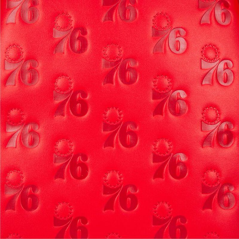 Set your team spirit free with this NBA Philadelphia 76ers Logo Mini Backpack. The embroidered red-white-and-blue 76ers logo patch prominently appears over the front zipped compartment. This logo also includes the word “Philadelphia,” inside a circle, with a white basketball in the middle. A debossed motif of another Philly 76ers logo, which includes the 13 stars in a circle over the number 76, plays out over a red background. Blue trim adds contrast and accent in team uniform color.
